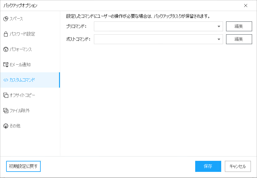 ⇒バックアップ前後のコマンド実行設定箇所