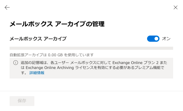 普通は50GBや100GBもメールボックスがあれば、それだけで十分な領域だと思いますが、必要に応じてアーカイブメールボックスを有効化して更に便利に活用していきたいですねっ!!