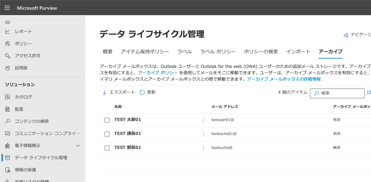 今回はExchange Onlineの(オンライン)アーカイブメールボックスを有効化する方法を検証してみました。