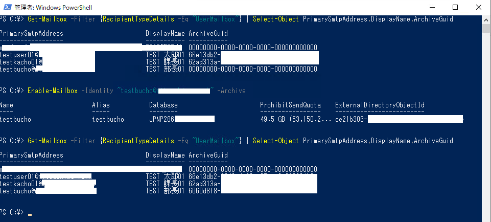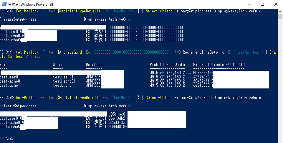 3.オンラインアーカイブ有効化手順(Powershellコマンド)