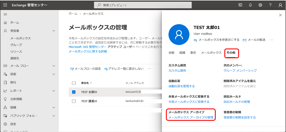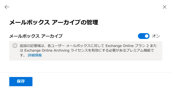 アーカイブ メールボックスの詳細