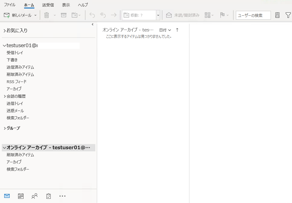 有効化すると「オンラインアーカイブ〜」というメールボックスが表示され利用することが出来るようになります。